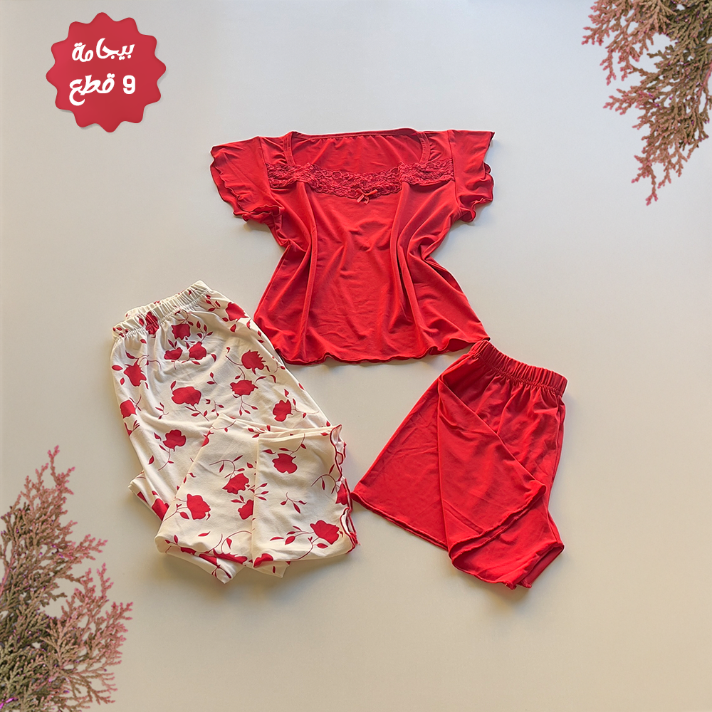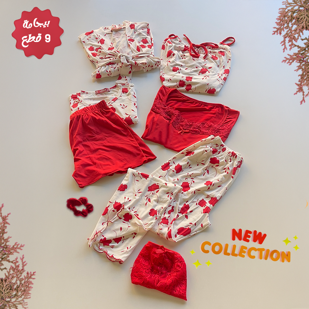 • طقم بيجامة 9 قطع – لطلة جديدة ومثيرة